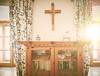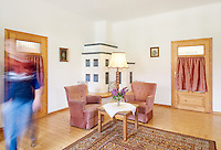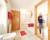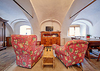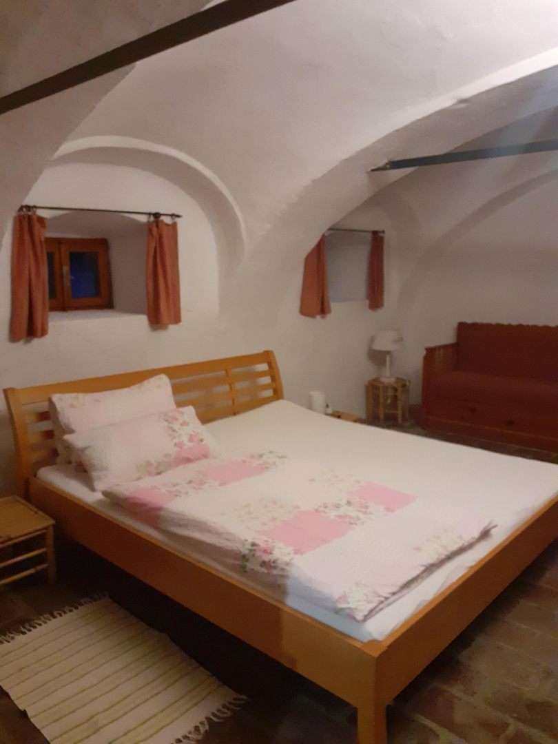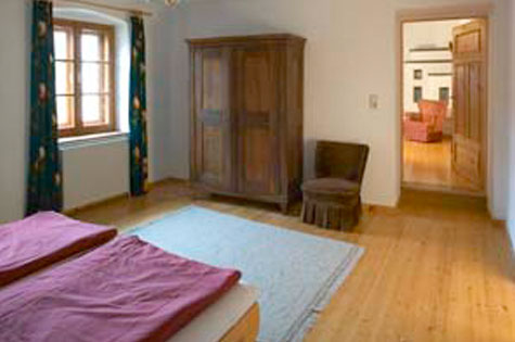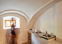 Das Gwölb besteht aus einem sehr großen Zimmer, einer kleinen Küche sowie Bad/WC. Wie der Name Gwölb schon sagt, handelt es sich um gewölbte Räume, die die Geschichte des Hofes erahnen lassen. Hier besteht der Fußboden aus Ziegelsteinen, die Momeli, Glorias Großmutter noch selbst verlegt hat. Das Gwölb war auch das Atelier von Charlotte Steinböck, die eine begnadete Malerin war. Die guten Schwingungen sind noch zu spüren.
